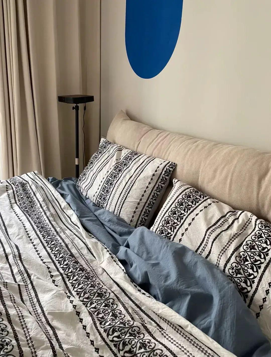 就选这种整面床头的床靠,平淡就放在床上,像软包床头一样的存在,既改善了不适感,又像换了一张新床一样,一举多得。